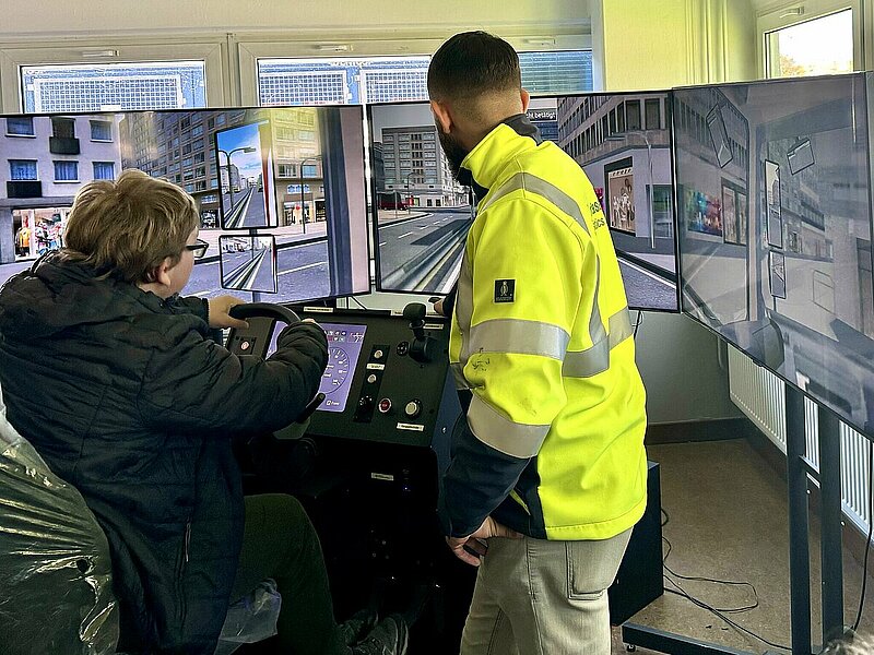 Praktisch ging es auch im Bereich Logistik zu: hier konnten die Jugendlichen den Beruf Berufskraftfahrer:in kennenlernen, indem sie einen LKW-Simulator (eine Leihgabe der Ausbildungsinitiative des Berufskraftfahrer e.V.) ausprobierten. Einblicke in den „echten“ Logistikalltag gab es außerdem bei einer Lagerbesichtigung der im Industriepark ansässigen Firma Sanofi.