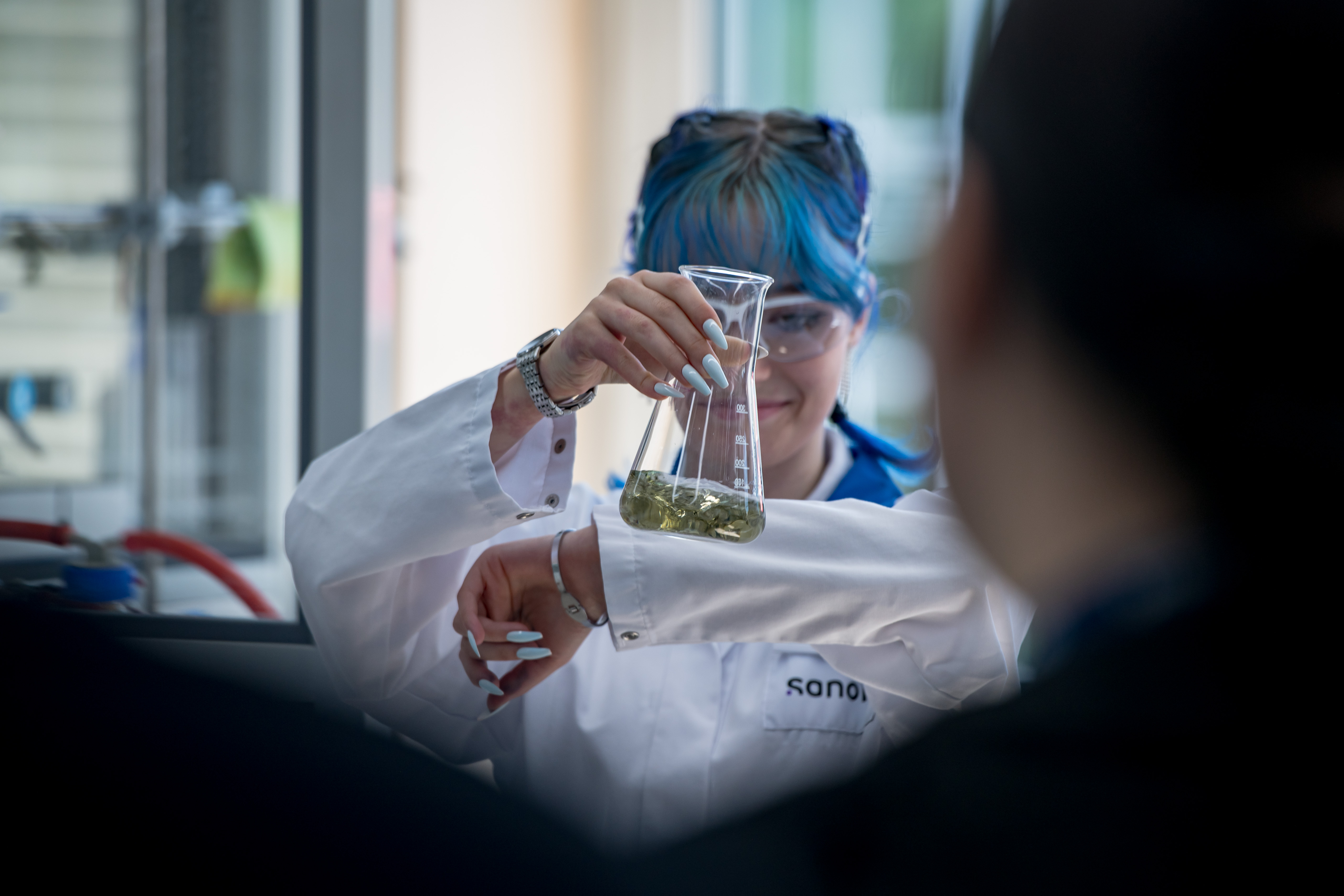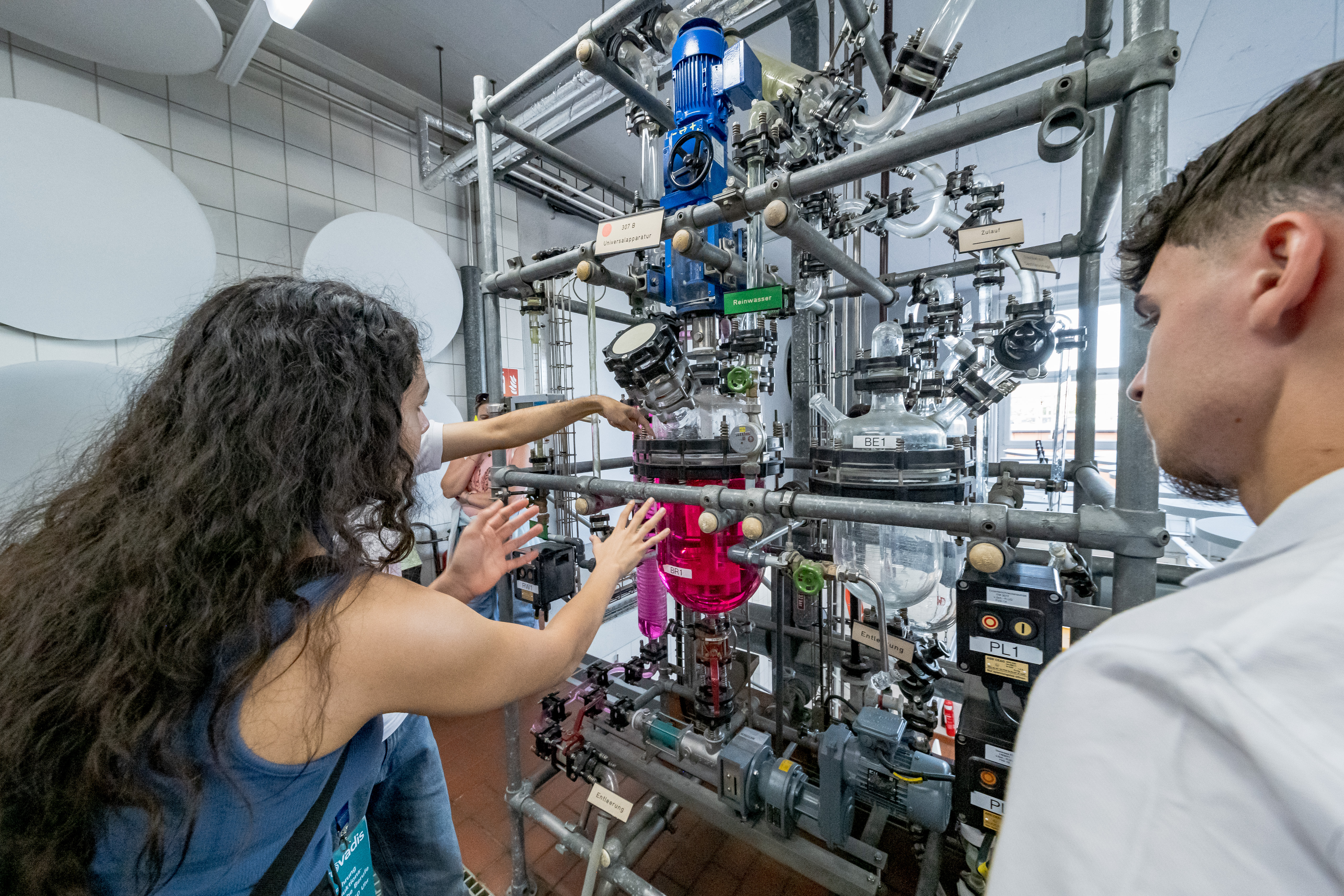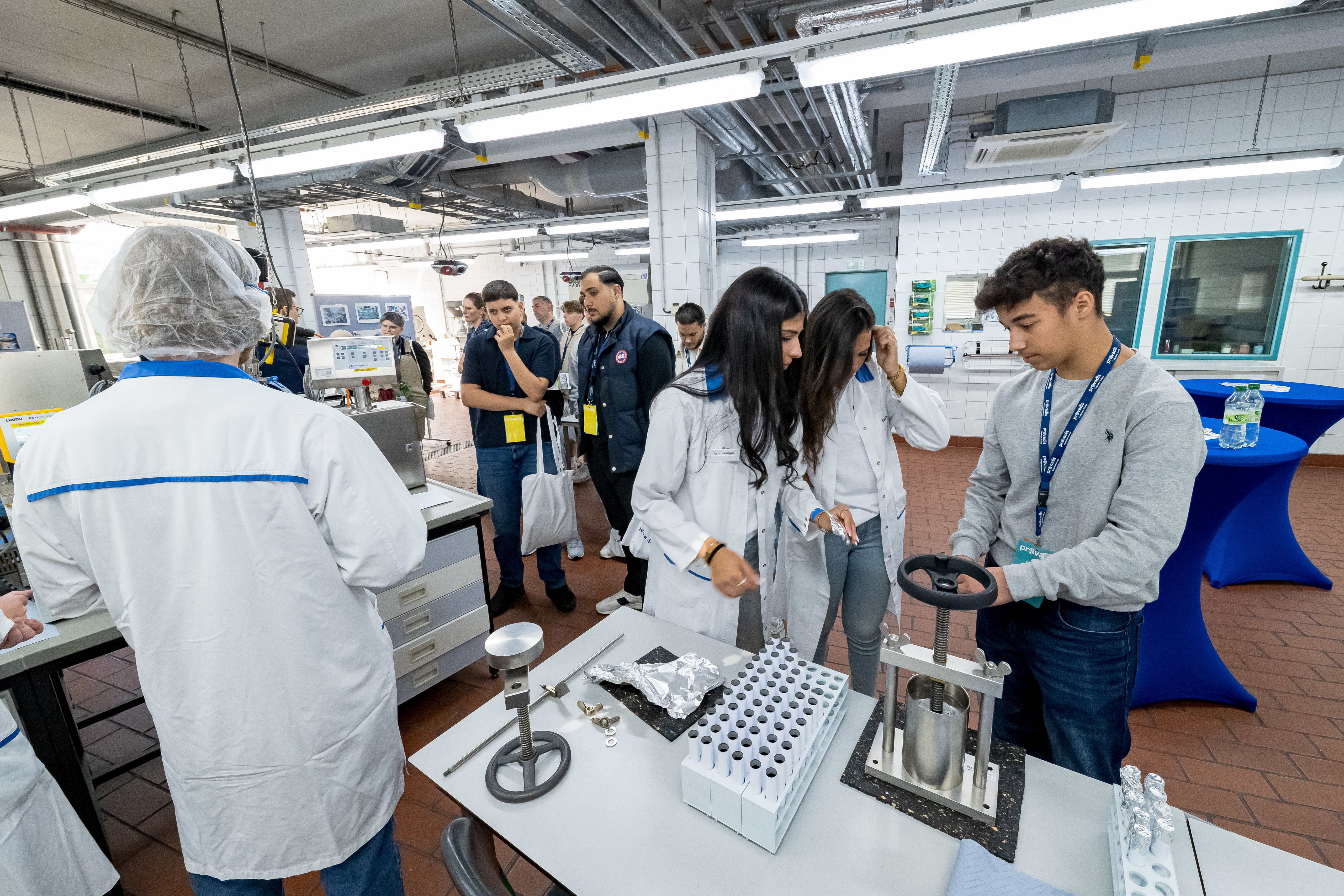 Mehr als 750 junge Menschen auf der Suche nach dem passenden Ausbildungsberuf oder Studienplatz sowie zahlreiche Eltern und Lehrkräfte nahmen an den Kleingruppenführungen durch Labore, Werkstätten und digitale Lernräume teil. Sie erhielten authentische Einblicke in verschiedene Berufsfelder und konnten direkt mit Auszubildenden und Lehrpersonal ins Gespräch kommen. Als Bonusmaterial gab es Info-Gespräche mit Auszubildenden und Lehrpersonal sowie Rundfahrten durch den Industriepark Höchst, der sonst nur Industriepark-Mitarbeitenden vorbehalten ist.