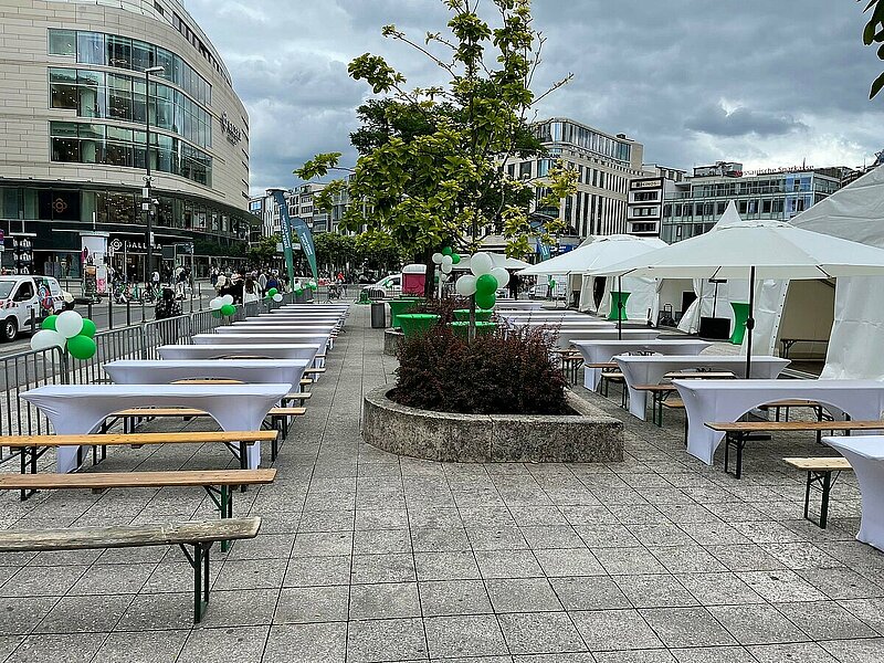 - Branding mit Heliumballons, die an einer Stelle als markante Wegweiser zum Partypoint dienten.