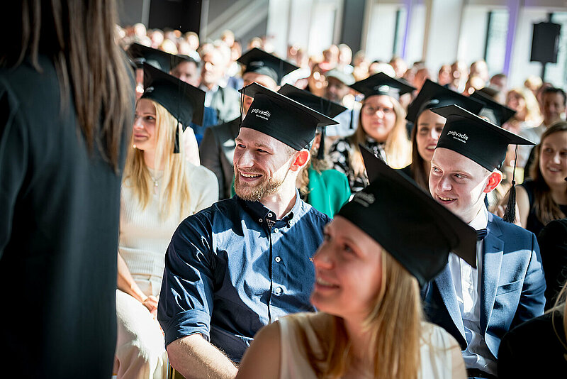 Am 7. Juni 2024 feierten 164 Absolvent:innen der Provadis Hochschule den erfolgreichen Abschluss ihres dualen Studiums. Sie starten nun hoch qualifiziert in eine berufliche Zukunft und freuen sich, dass eine lern- und arbeitsintensive Zeit zum Teil mit Bestnoten beendet wurde. Die Abschlussfeier im Haus der Begegnung in Königstein war ein emotionaler Höhepunkt, der diesen wichtigen Meilenstein gebührend inszenierte.