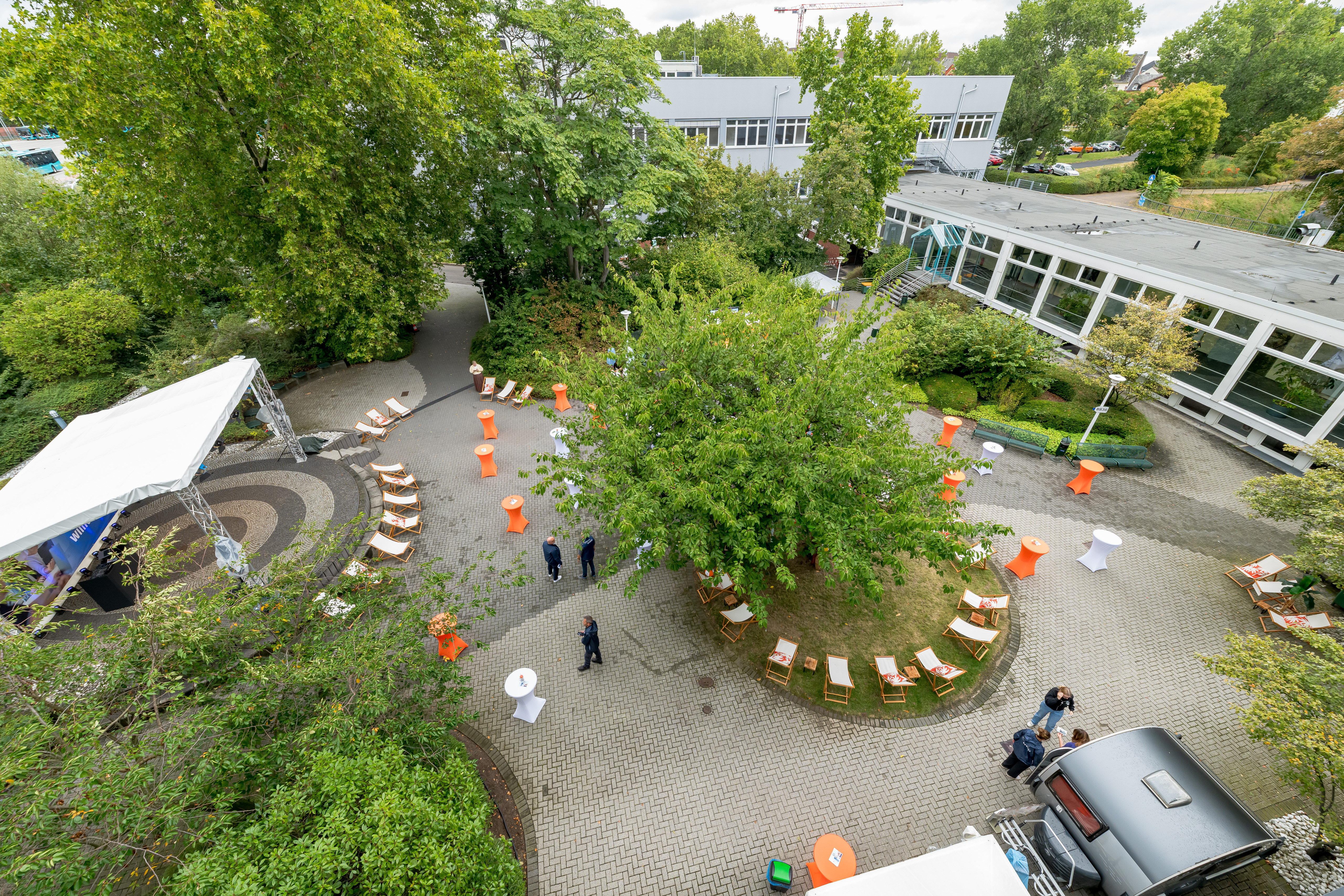 Der Provadis Campus – der geografische Dreh- und Angelpunkt der kommenden Jahre für die neuen Auszubildenden. Auf dem Weg in Labors und Werkstätten, zur Kantine und dem Cafè Campus werden sie diesen Platz hunderte Male überqueren – gut, dass er am Welcome Day mit lauter positiven Assoziationen verknüpft wird. Provadis Corporate Events inszenierte wie gewohnt ein Crossover-Event zwischen feierlicher Willkommenszeremonie und entspannter Party.