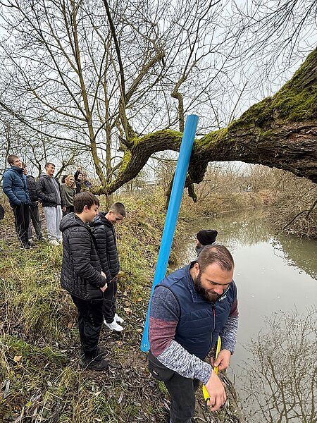 Begleitend lernten sie die relevanten Berufsbilder entlang der Wertschöpfungskette kennen. Zum Abschluss konnten die Teilnehmenden ihr Wissen auch direkt in die Praxis umsetzen: An der Nidder führten sie einen Feldversuch mit einem Funktionsmodell einer Wasserturbine durch, um Strömung, Drehmoment und qualitative Leistungsmerkmale direkt im natürlichen Umfeld zu beobachten.