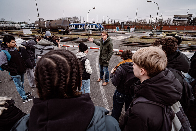 Eine Schulklasse der Leibnizschule (MINT-Zentrum Frankfurt West) war im Rahmen des „Power Up"-Projekt zu Besuch an der Wasserstoffzugtankstelle im Industriepark Höchst. Gemeinsam mit Wasserstoffexperte Dr. Sirko Ogriseck erlebten die Schülerinnen und Schüler hautnah, wie Technologien aus dem Unterricht im industriellen Alltag eingesetzt werden.