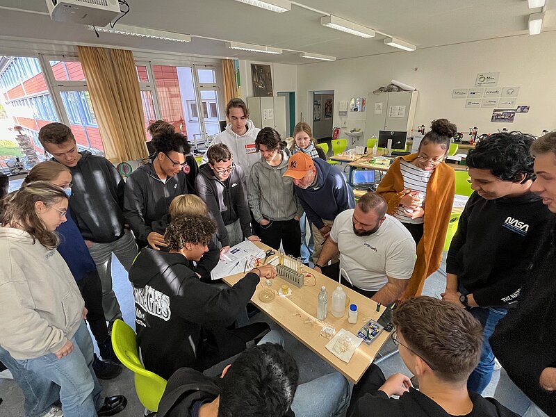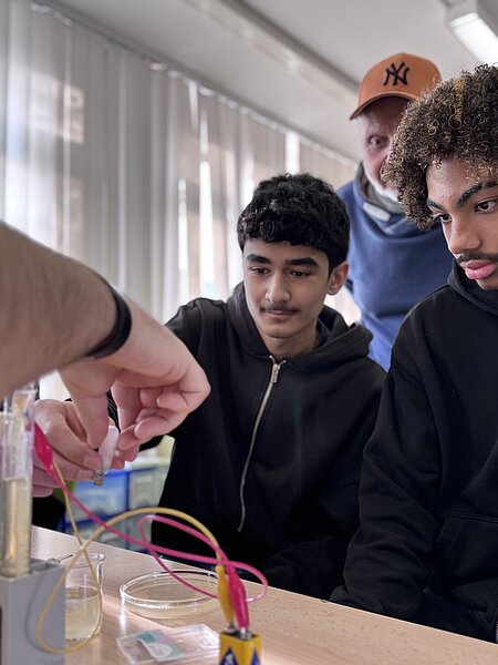 Der Workshop im MINT-Zentrum West an der Leibnizschule beschäftigte sich mit der Energieform Wasserstoff. „Ich finde es toll, dass man hier tiefere Einblicke in Themen erhält, die so nicht in der Schule vorkommen und man gleichzeitig auch einen Eindruck von den Berufen bekommt“, sagt Luke Anagi, der die Klasse 10 d der Leibnizschule besucht. „Ich freue mich auf die Abschlussveranstaltung.“