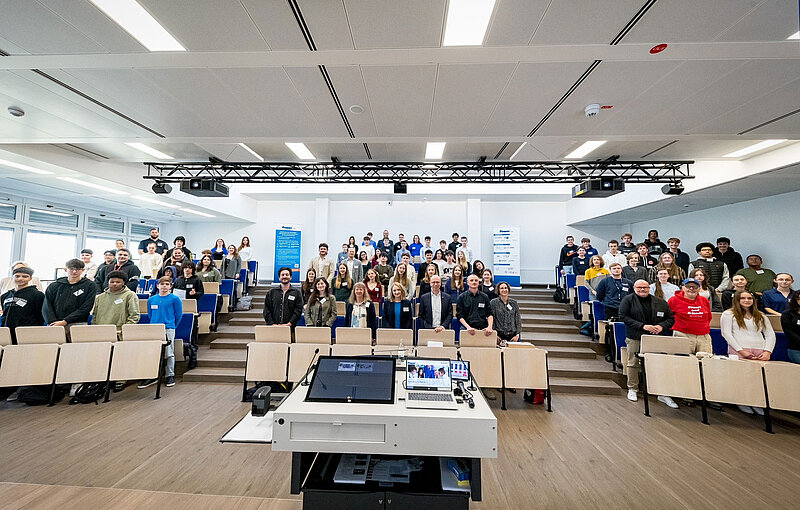 Welche aktuellen wissenschaftlichen Aspekte bei der Energiewende mit Wasserstoff eine Rolle spielen, erklärte anschließend Prof. Saskia Biehl vom Fraunhofer Institut LBF in Darmstadt. Sie freute sich darüber, dass ein großer Teil ihres Inputs über das Element Wasserstoff bereits in den Präsentationen der Schülerinnen und Schülern enthalten war. „Wasserstoff begegnet uns in unserem täglichen Leben überall. Er flexibilisiert die Energieversorgung und bietet große Chancen für zukünftige Arbeitsfelder“, betonte sie. „Besonders in Bereichen der Mobilität hält der klimafreundliche Energieträger Einzug. Die Herausforderung ist es, seine Einsatzmöglichkeiten nachhaltig, zuverlässig und sicher zu gestalten. Dadurch werden viele neue Berufsfelder entstehen, an die wir heute noch gar nicht denken.“