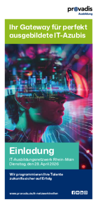 Zu diesem Thema lädt die Provadis Gruppe zum Jahrestreffen ein, das Ihnen eine perfekte Plattform für einen gemeinsamen Erfahrungsaustausch und Praxiseinblicke zu verschiedenen innovativen Ausbildungsansätzen für IT-Berufe bietet gepaart mit informativen Kurzvorträgen.